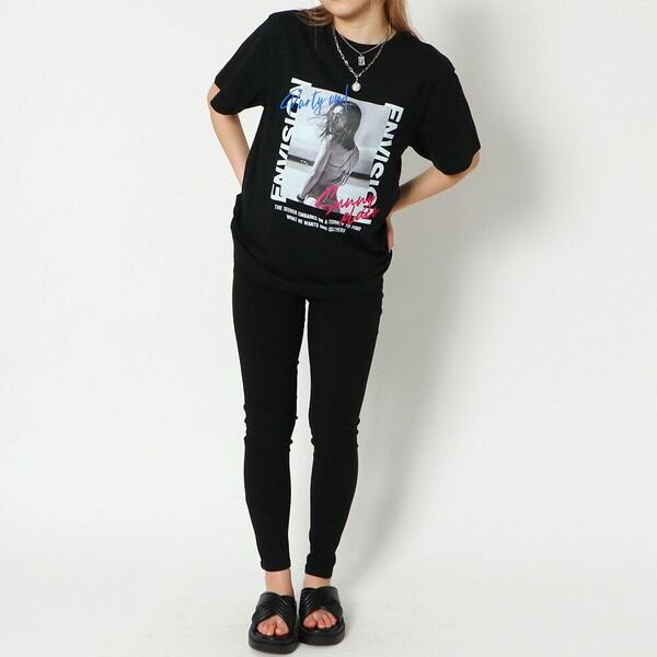 おしゃれなシートフォトプリントがポイントのTシャツが登場★ヴィンテージ感を感じさせるモノクロフォトに加えてカラーのロゴの組み合わせも楽しめるデザイン♪ゆったりとしたサイズ感が夏のリラックスカジュアルにぴったりのシルエット◎デニムやリネンパンツ、マキシ丈スカートで合わせるとトレンド感が出ておすすめです☆
