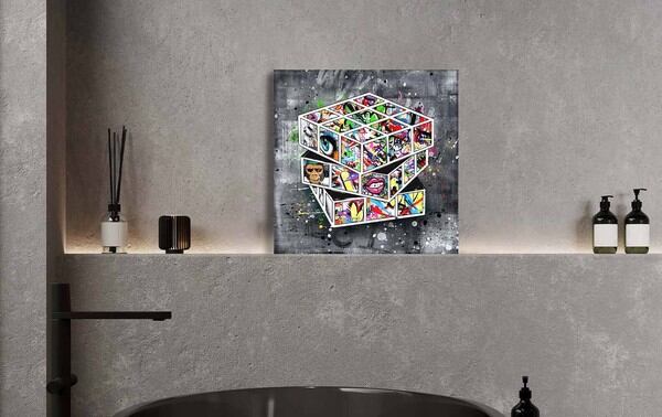 代表作 ARTJOY CUBE GRAPHICAL アートパネル 白 ストリート ポップ アート ルービックキューブ 絵 猿 / 家具・インテリア インテリアアート アートフレーム