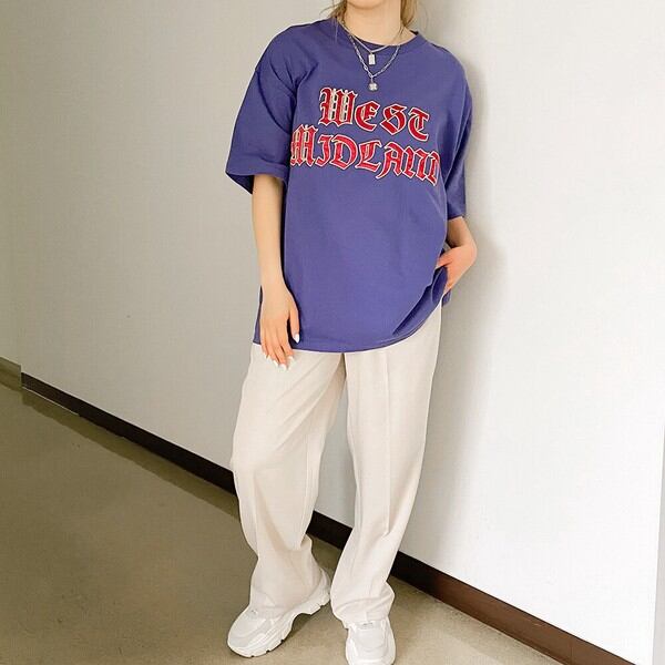 デイリーに活躍するサテンロゴ刺繍Tシャツが登場★ドロップショルダーに、ゆとりのあるサイズバランスがリラックスムードを演出♪フロントのロゴは光沢感のあるサテンロゴ刺繍を使用し、プリントには無い雰囲気でスポーティな印象をプラス◎様々なボトムスに合わせやすく、デイリーにご活躍いただけるアイテムです☆
