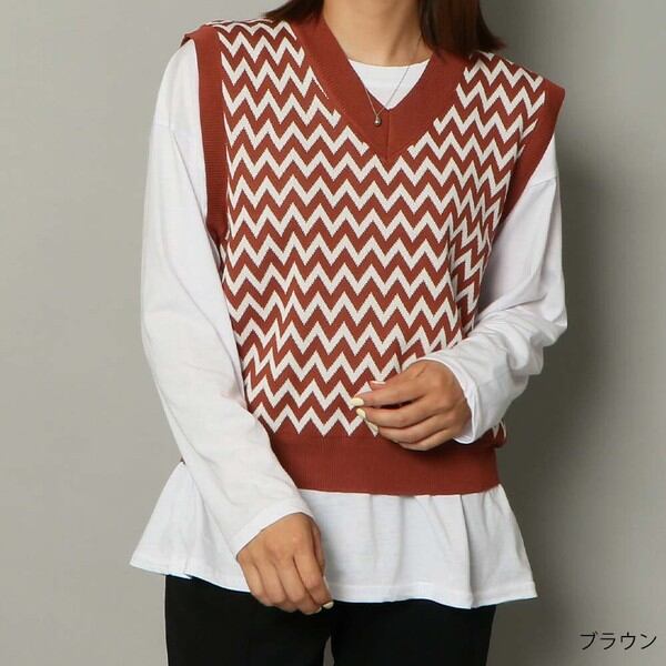 インナー付きジャガードベスト厳選/2021秋冬 / ファッション レディースアパレル トップス Tシャツ・カットソー
