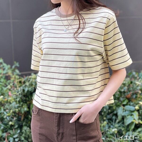 Tシャツ トップス マルチボーダー 短丈 T カジュアル 春 2210075