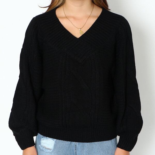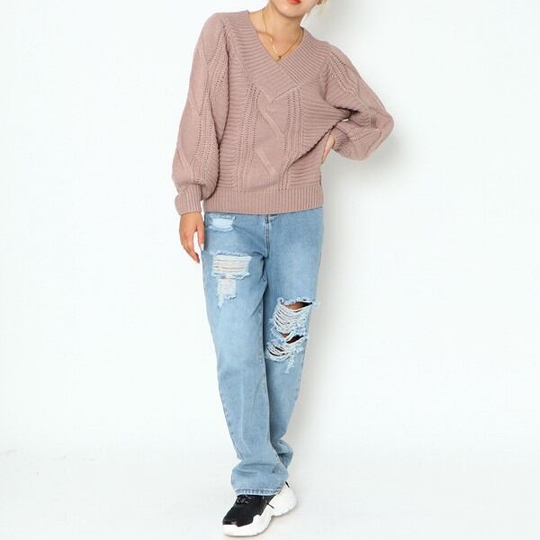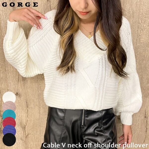 プルオーバー トップス ケーブル Vネック オフショル 秋 冬 2230097