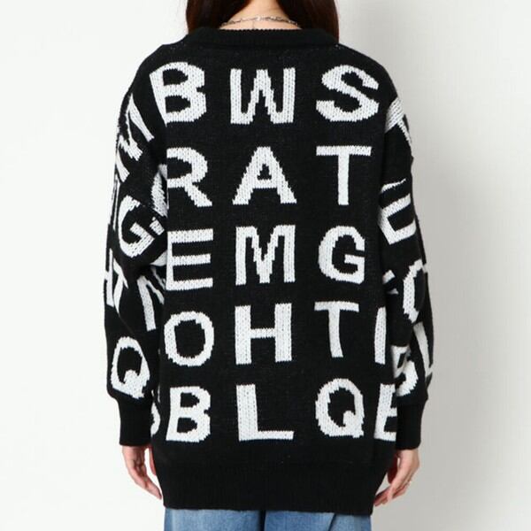 大きな英字ロゴがゴロっと散らばった英字ロゴニットプルオーバーが登場★少し厚めの生地感が冬にぴったり♪ゆとりを持って着られるのが可愛らしくてうれしい◎カジュアルメンズぽくてクールな印象を作れます☆