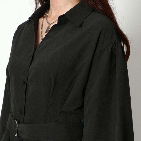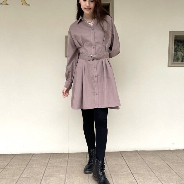 ウェストのベルトがポイントのシャツブラウスチュニックの登場★合わせやすいシンプルデザイン☆ベルトを外してワンピース風にしても◎首元は顔周りをすっきりと魅せてくれるVネック仕様でハイネックのインナーをレイヤードしてもオシャレ♪