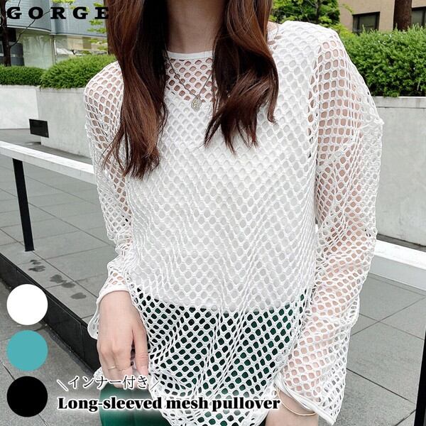 インナー付き長袖メッシュプルオーバー / ファッション レディースアパレル トップス Tシャツ・カットソー