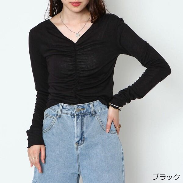 スラブ トップス ギャザー 長袖 春 夏 秋 2235002