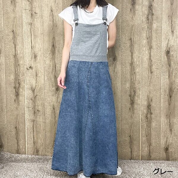 ワンピース オールインワン デニム 裏毛 ドッキング 春 夏 2313407