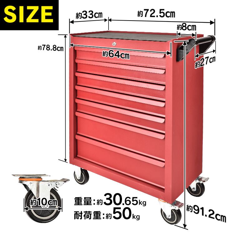 【商品内容】:ツールキャビネットワゴン【サイズ】:(約)72.5cm×33cm×78.8【重量】:(約)30.65kg【耐荷重】:(約)50kg【本体素材】:SPCC