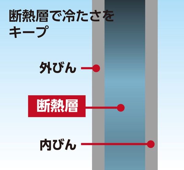 真空二重構造のため、冷たさを保ち、飲み物を保冷できます