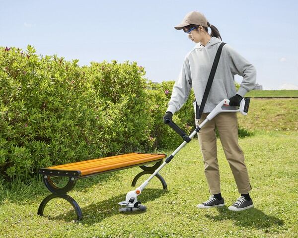 ●平地でも斜面でも、自然な姿勢で簡単草刈りできる充電式グラストリマーです
