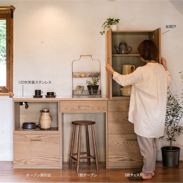 ・オープン深引出/3段チェスト/板開戸/1段オープン
