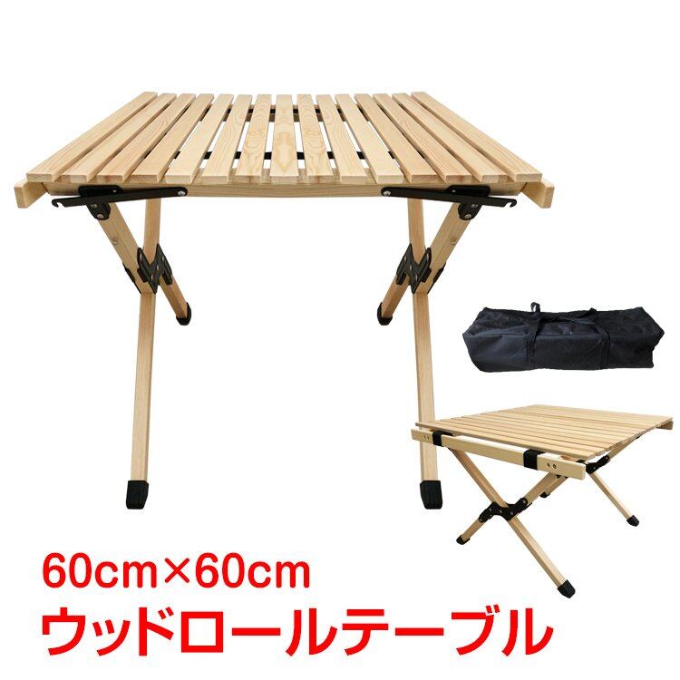 テーブル 折りたたみ レジャー ロール ウッド 60cm ピクニック ローテーブル