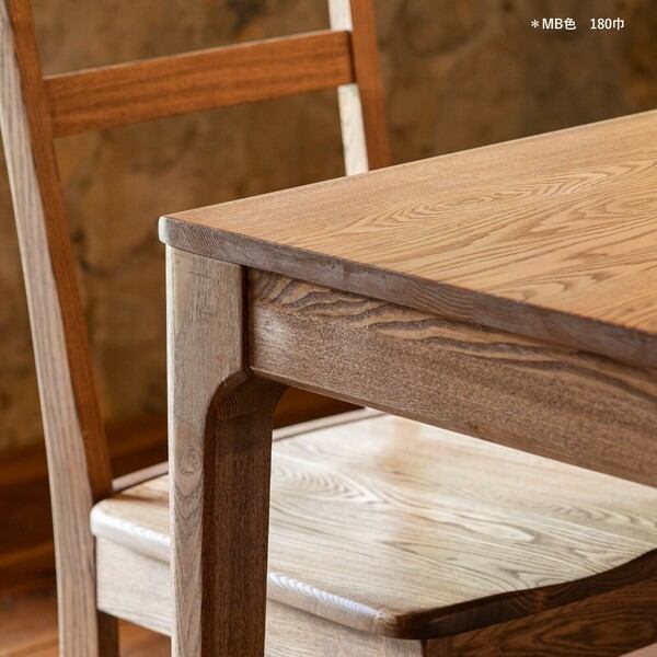 経年変化でゆるやかに色づいて味わいが深まるので、ながく使い続けていくのにぴったりなダイニングテーブルです