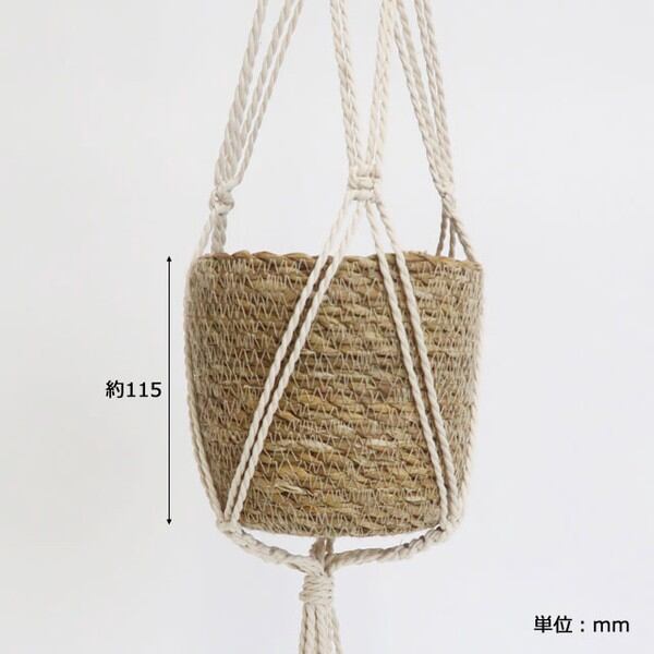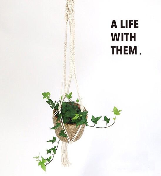 コットンロープをマクラメ編で編み上げたプラントハンガーと