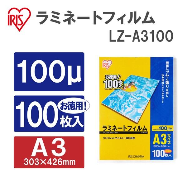アイリスオーヤマ 大口受付中! ラミネートフィルム100μ(名刺サイズ~A3ワイド)100枚入 / 生活雑貨 ステーショナリー・クラフト ファイリング用品