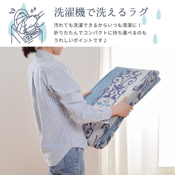 洗濯機で洗える ボンディングラグ インド綿100% 「ソナー」 グリーン / 家具・インテリア ファブリック・敷物 ラグ・マット