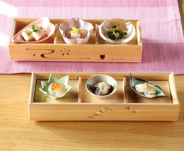 ひのき透かし長方盛器 春秋/波千鳥 /三ツ仕切 / 生活雑貨 食器・キッチン