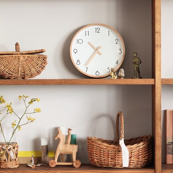 天然木を使用してお作りしておりますので、木枠のパテ埋め・時計針の色合いの違いやささくれ・生産工程上による裏面のキズ・文字版の塗装はね等がある場合がございます
