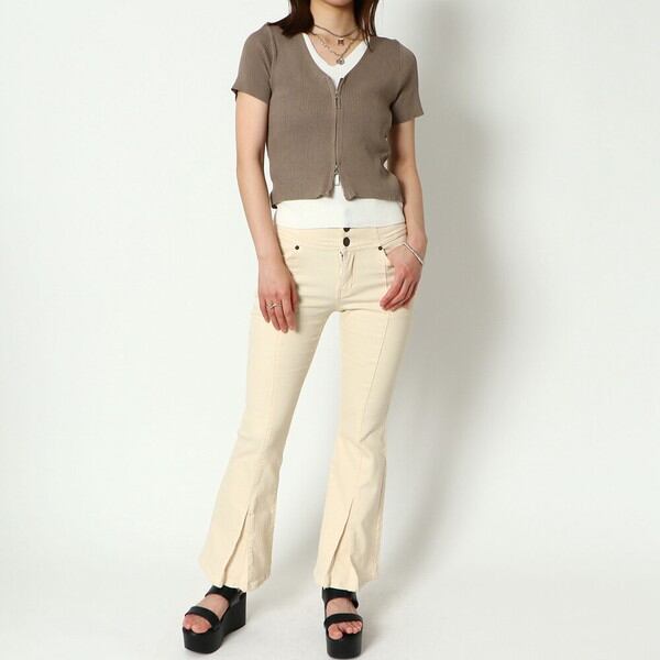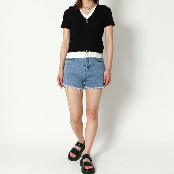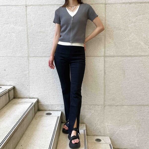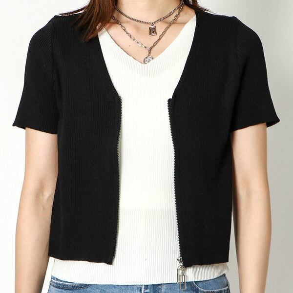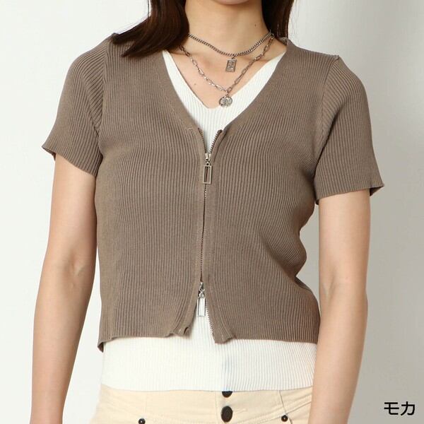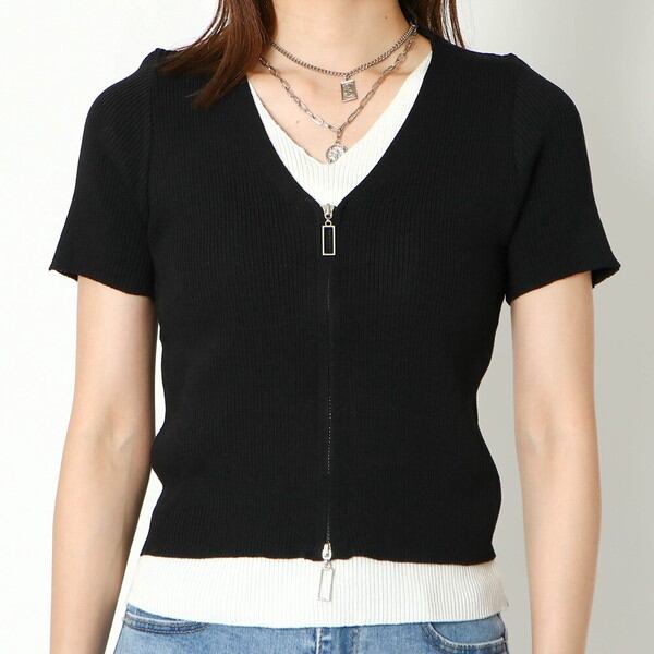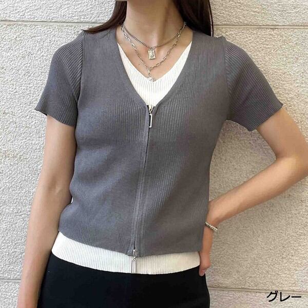 1枚で決まる!トレンドのダブルZIPデザインがポイントのコンパクトトップスが登場★伸縮性のあるリブニット素材はボディラインに程よくフィットし華奢な印象に♪レイヤードスタイルが一枚で楽しめる◎コンパクトな丈感なのでハイウエストのボトムと相性抜群です☆