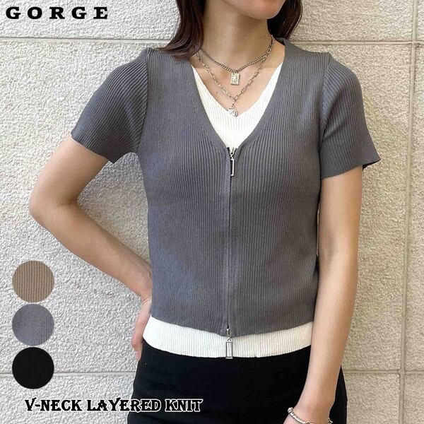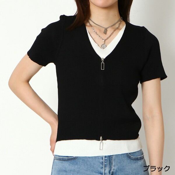 Vネックレイヤードニット / ファッション レディースアパレル トップス Tシャツ・カットソー