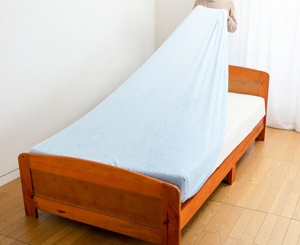 ●タテヨコ伸縮素材なので、シワになりにくくマットレスや敷布団にキレイに装着できます