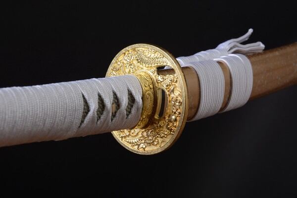●刃紋の美しさが映える白い雪のような鞘を纏わせ、品位を高めたリアルな刀剣に仕上げました