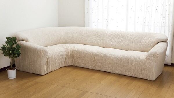 ☆タテ・ヨコ伸縮式ソファカバー(クレア)ベージュ右コーナー5人掛用 1点 等