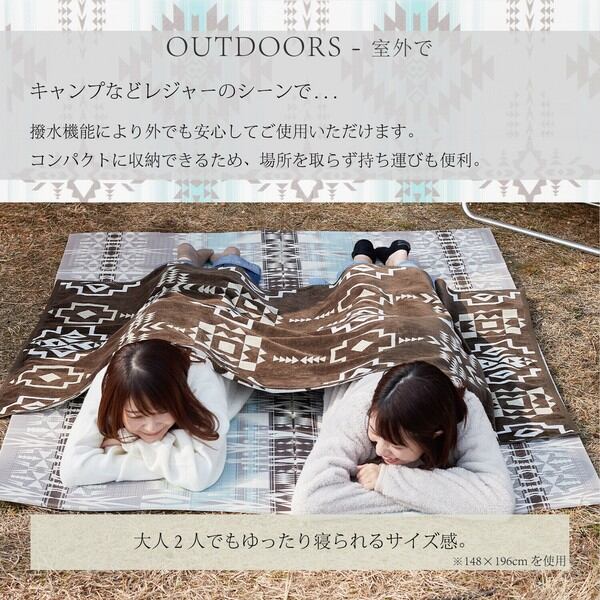 撥水加工付きで、テントの中などアウトドアシーンでも活躍します