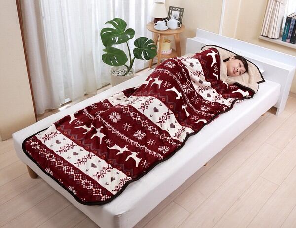 ★ノルディック柄もこもこ寝袋毛布 1枚 ワイン 1点 等