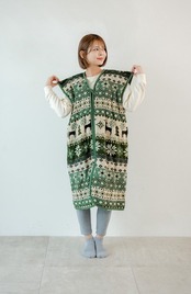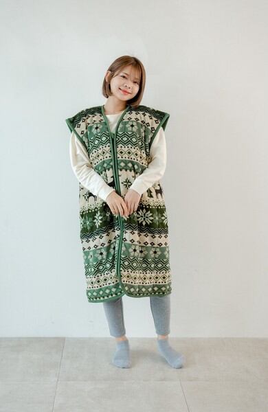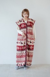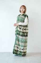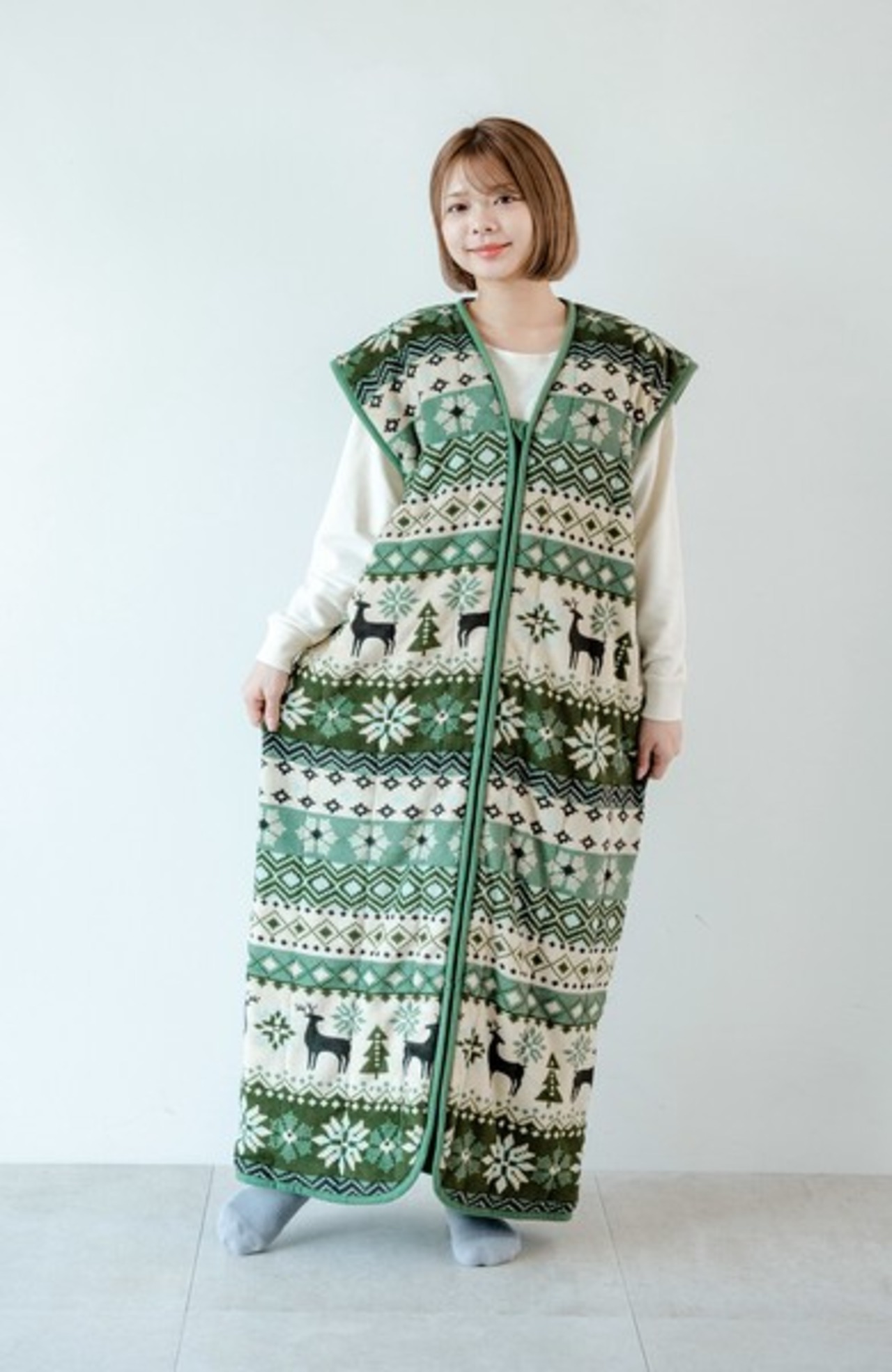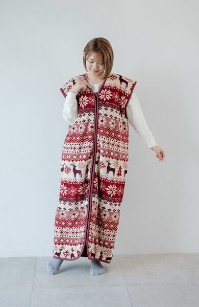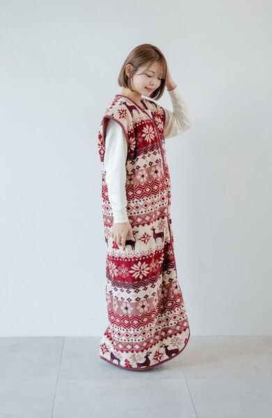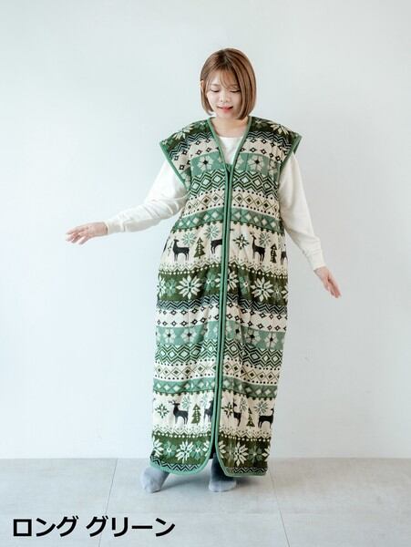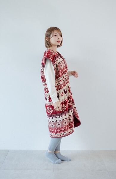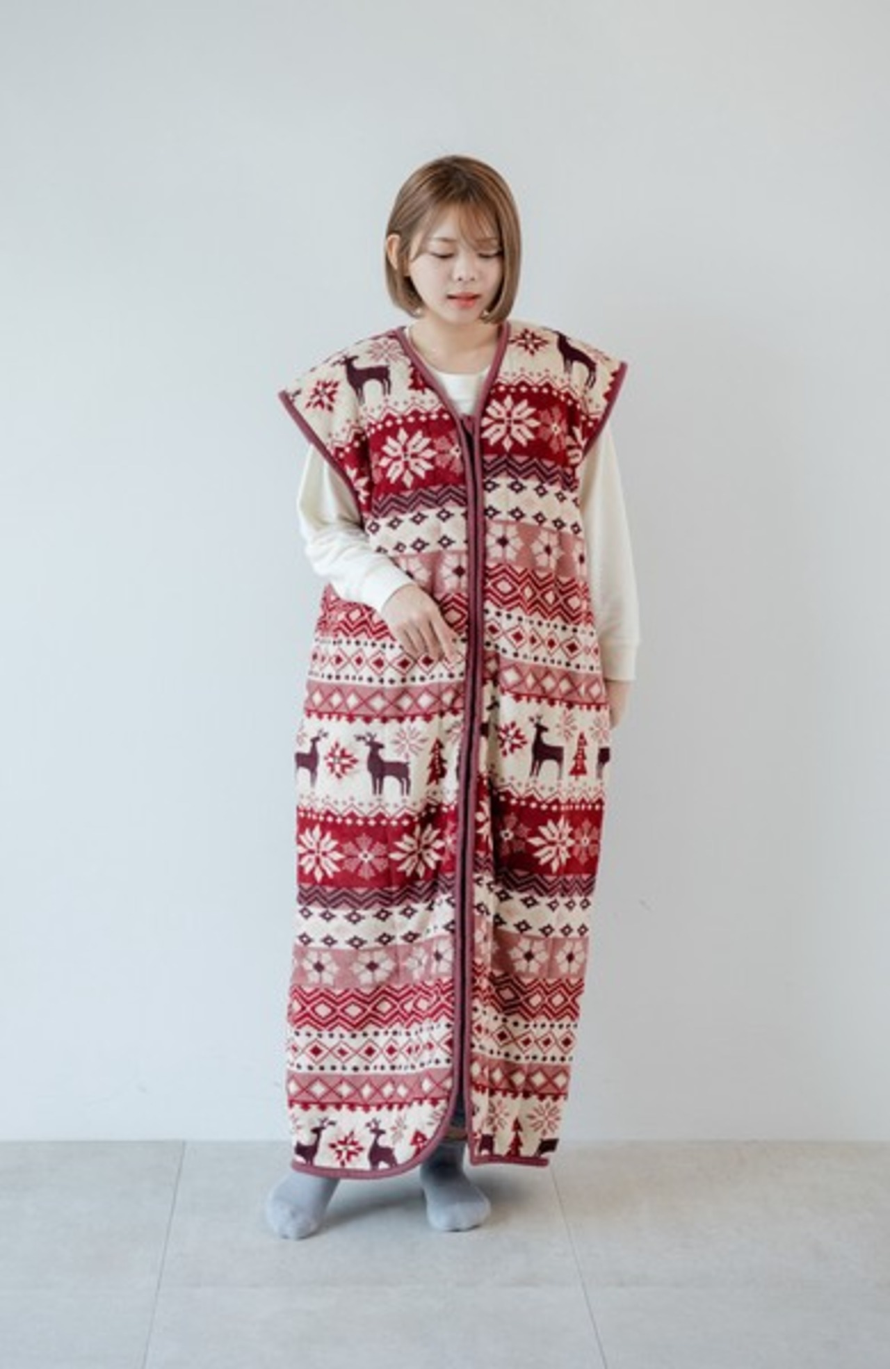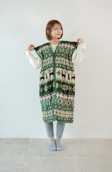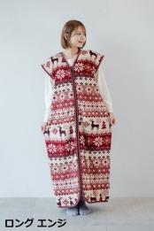 ☆ノルディック柄 吸湿発熱袖なし着る毛布 ロング エンジ 1点 等
