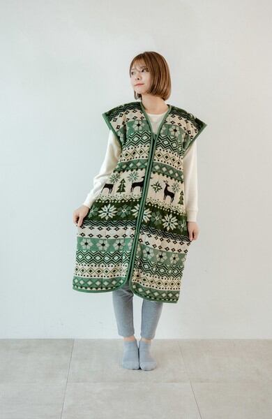 ノルディック柄 吸湿発熱袖なし着る毛布 / 家具・インテリア 寝具