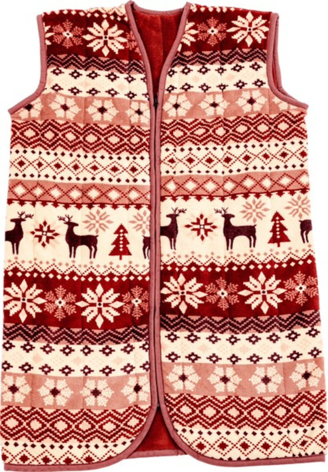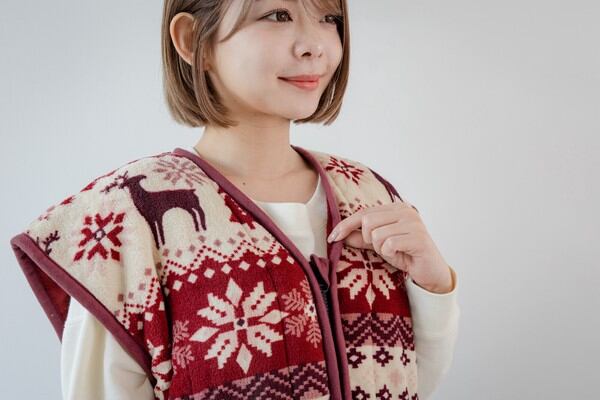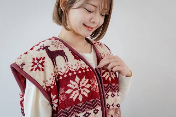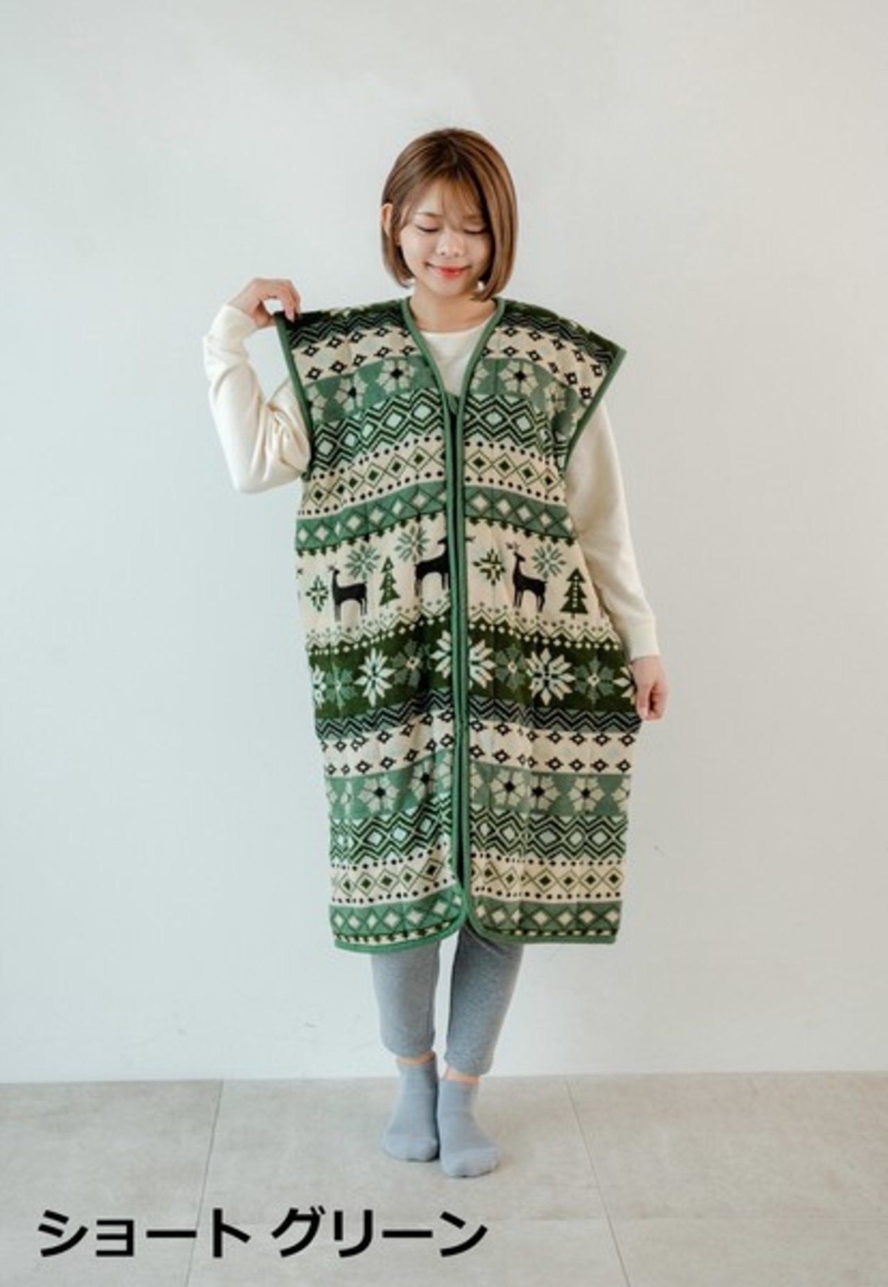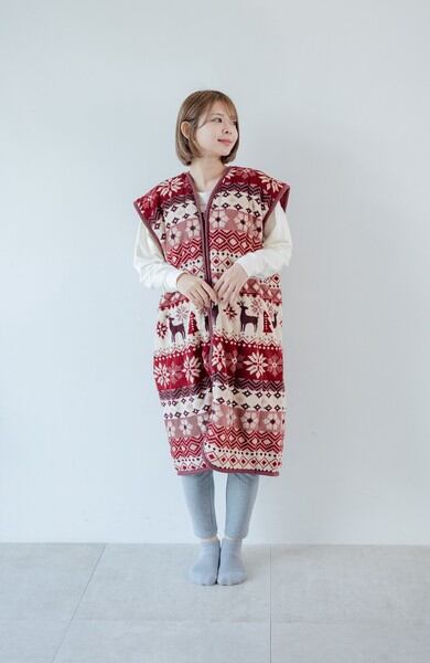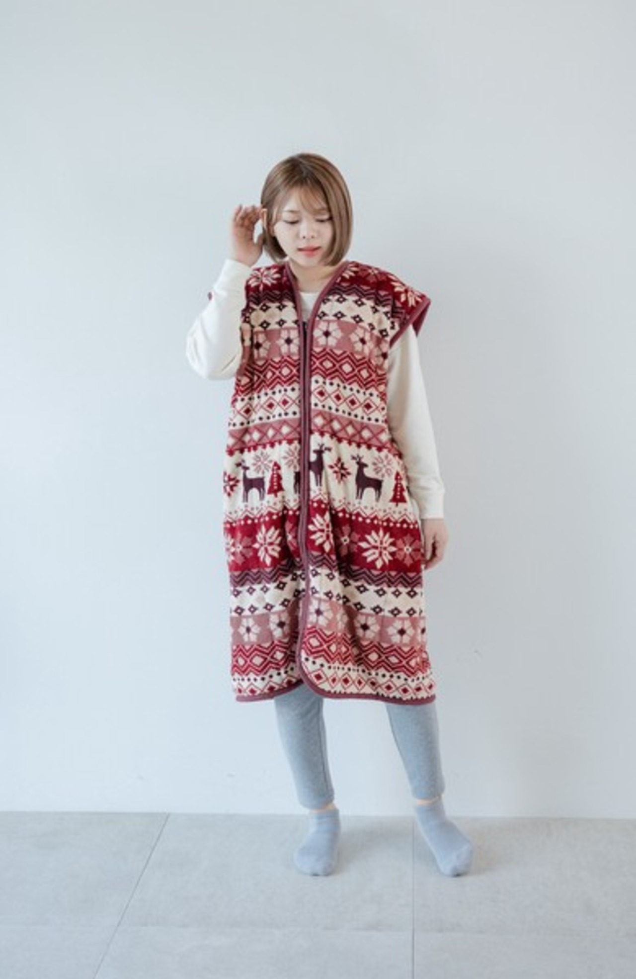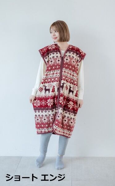 ★ノルディック柄 吸湿発熱袖なし着る毛布 ショート エンジ 1点 等