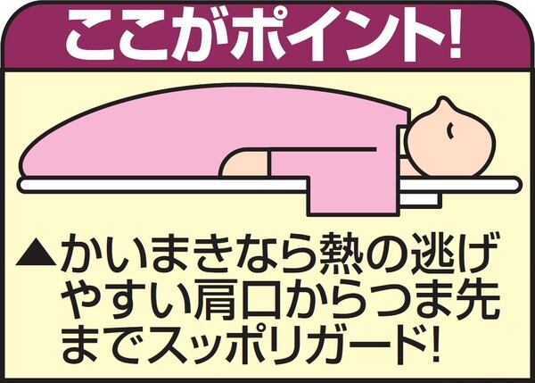 ●ここがポイント!かいまきなら熱の逃げやすい肩口からつま先までスッポリガード!