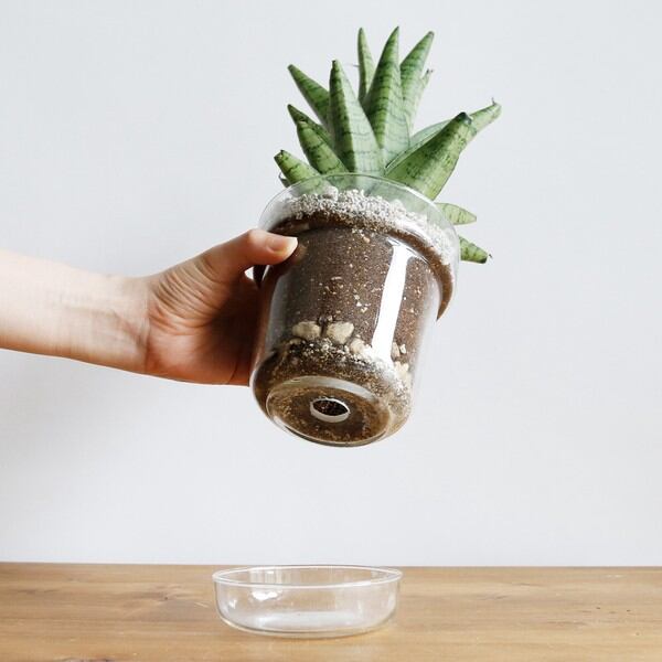 鉢の底には根腐れ防止の穴が開いているので植物にもやさしいデザイン