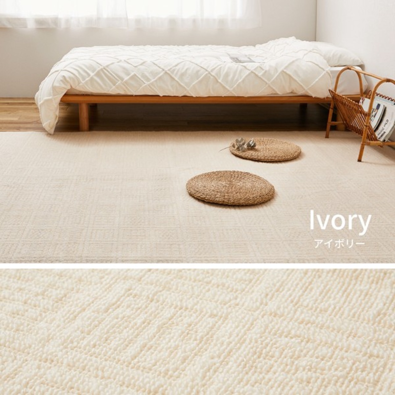 軽量 敷き詰めカーペット タフト 軽量 裏なし 日本製 「ピクシス」 アイボリー・グレーベージュ/江戸間 / 家具・インテリア ファブリック・敷物 カーペット・絨毯