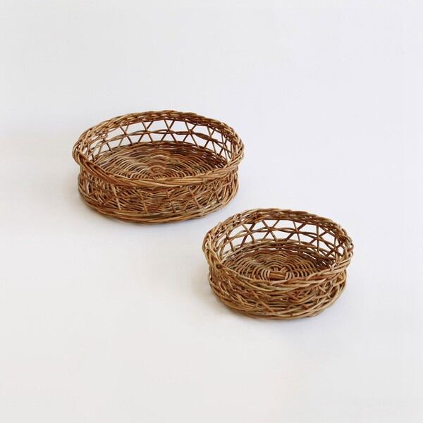 透かし編みを施した浅めタイプのバスケットです