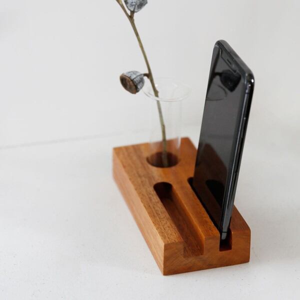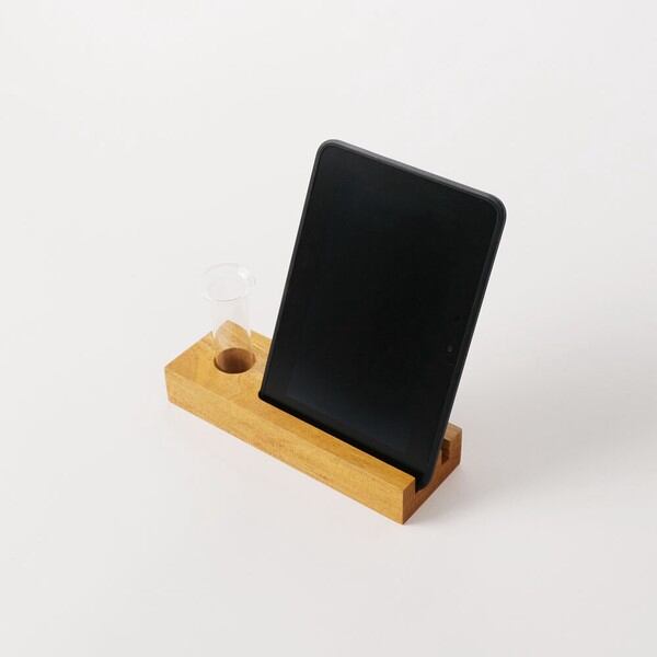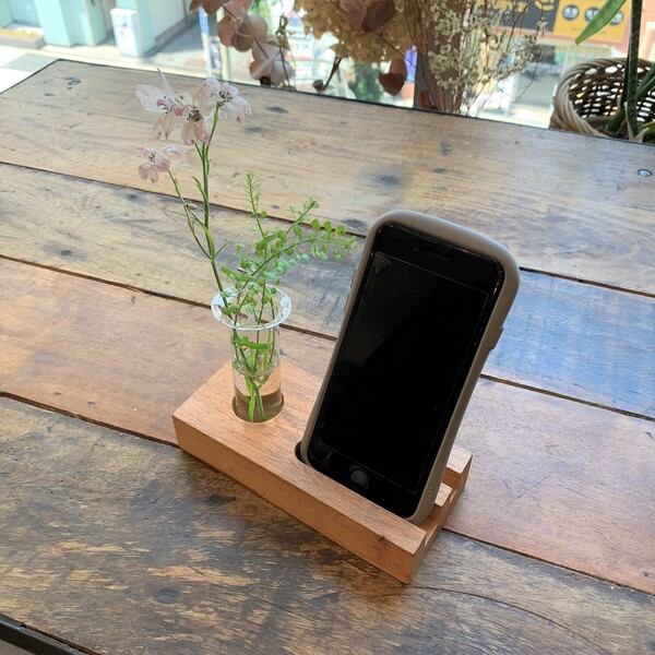 モバイルスタンドとフラワーベースが一緒になった、 デスク周りに癒しと華やかさをもたらしてくれるアイテムです