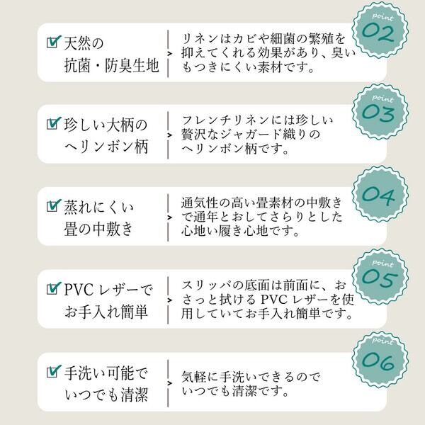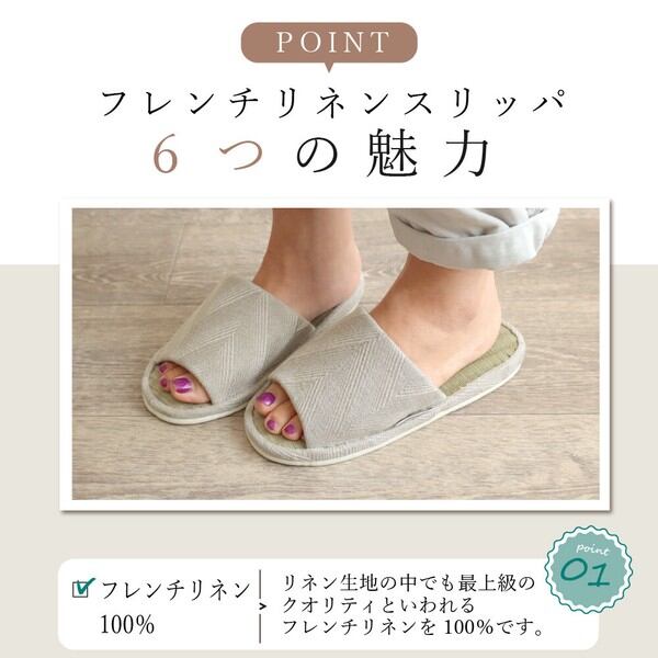 リネン生地の中でも最上級のクオリティといわれるフレンチリネンを100%使用したスリッパです