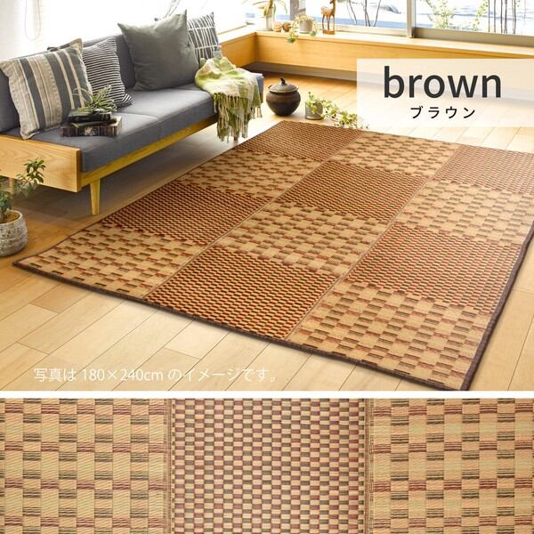 水をはじく! い草コンパクトラグ 裏貼有 滑りにくい加工付き 「キハチ」 ブラウン / 家具・インテリア ファブリック・敷物 畳・ござ