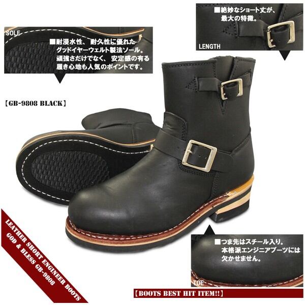 [レディース] God&Bless オールレザー 本革ショートエンジニアブーツGB-9808 / ファッション 靴