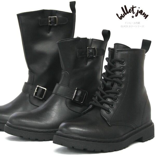 BULLET JAM インヒール内蔵!ブラックカラーブーツ BJ-16112 18112 19112 / ファッション 靴 ロング