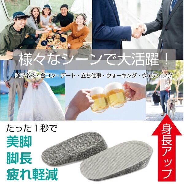ヒールアップインソール 衝撃吸収!身長アップ!丸洗いもできる!最新粒状TPUインソール KI-25 35M / ファッション 靴 シューケア用品