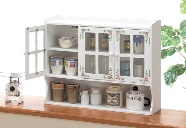 ★花柄キッチン収納上置きラック 2枚扉 1点