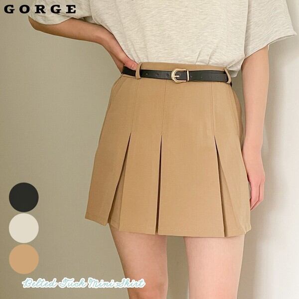 ベルト付きタックミニスカート / ファッション レディースアパレル ボトムス