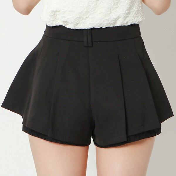 裾レースプリーツスカパン / ファッション レディースアパレル ボトムス パンツ キュロット