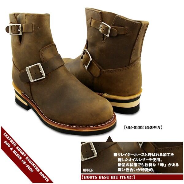 [メンズ] God&Bless オールレザー 本革ショートエンジニアブーツGB-9808 / ファッション 靴