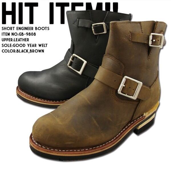 グッドイヤーウェルト製法のオール本革素材☆ショートエンジニアブーツ!スチール(鉄板)入りトゥで本格エンジニアタウン履きのファッション、ツーリング、安全靴としても活用できます