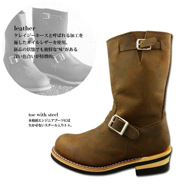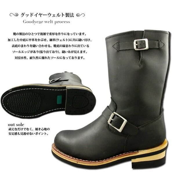 グッドイヤーウェルト製法のオール本革素材☆ショートエンジニアブーツ!スチール(鉄板)入りトゥで本格エンジニアタウン履きのファッション、ツーリング、安全靴としても活用できます