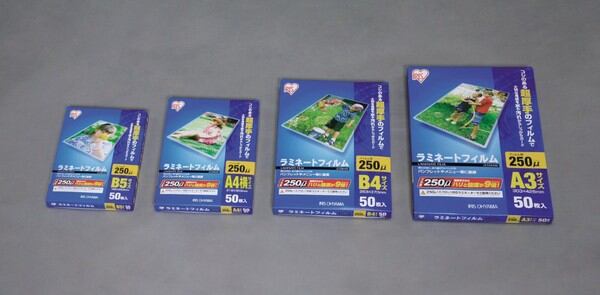 厚さ250ミクロンのコシのある超厚手のラミネートフィルム50枚です