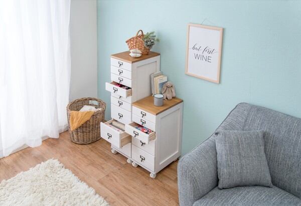 ●深さの違う2種類の引出しに、移動に便利なキャスターも付いており、機能面でも充実